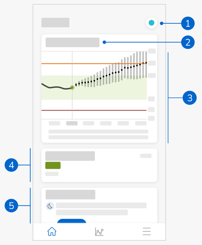 - Ikona aplikace Accu-Chek SmartGuide: Klepnutím na tuto ikonu přejdete na domovskou obrazovku aplikace Accu-Chek SmartGuide. Aplikace Predict zůstane otevřená.